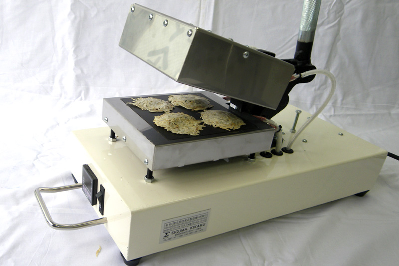 大きな食材食品の製造が可能。数量も多く製造できます。 - 熱源に大容量(上下熱盤に各250W☓3本)のヒーターを使用し、加熱立ち上がりが早く、加工条件の幅も拡大しました。